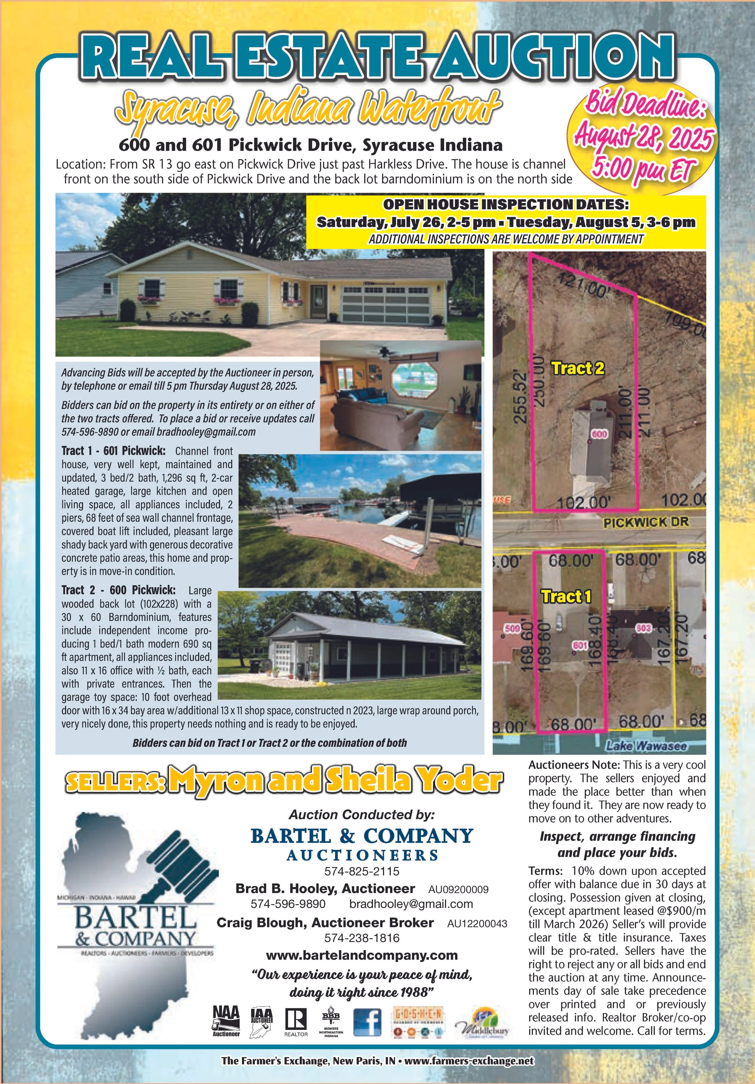 Bartel & Company has been in the Auction and Real Estate business selling and developing since 1985. Brad B. Hooley is the owner and founder of Bartel & Company Realtors/Auctioneers, a full service Real Estate and Auction firm founded in 1988. Craig B. Blough is a Broker and Auctioneer at Bartel and Company, and the owner and founder of Bartel & Company of Michigan. Both Craig and Brad are also farmers and owners of farmland in Elkhart County, IN. Bartel & Company successfully sells real estate of all types at public auction including Farms, Land, Industrial Buildings, Office Buildings, and Homes. Bartel and Company is a broker for farm land leases, brokering leases for over 1000 acres of tillable land each year. Bartel & Company conducts live and online auctions of vintage automobiles, machinery, nursery stock, industrial and construction equipment, office machines, and furniture among other items.
